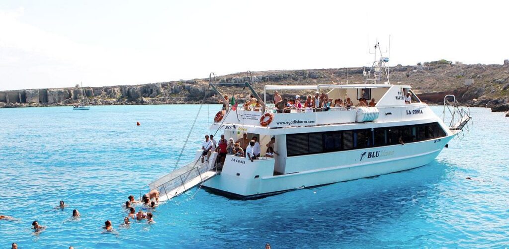 Partenza alle 9:30 da Trapani con arrivo al porto di Favignana intorno le 10.15. Sosta di circa 2 ore al paese di Favignana per visitare il centro e la tonnara. Il giro in barca a Favignana inizierà alle ore 12:00, quando si salperà nuovamente per costeggiare l’isola fermandoci nelle calette più belle e suggestive per fare il bagno. Seguirà il pranzo a bordo con antipasto tipico, penne al pesto alla trapanese, pane, acqua, vino e frutta di stagione. Ultimato il pranzo si farà rotta su Levanzo dove faremo una sosta in porto di circa un’ ora per rilassarsi un pò in paese. E poi di nuovo a bordo per deliziarci con il bagno a Cala Fredda e Cala Minnola. Ritorno al porto di Trapani per le ore 17:45 circa.